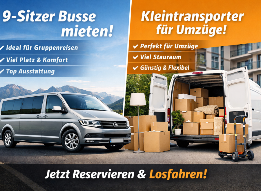 Egal ob es um Firmenmieten, einen schnellen Unfallersatzwagen, den perfekten Umzugswagen oder komfortable Busse und Transporter für Geschäfts- und Privatreisen geht: